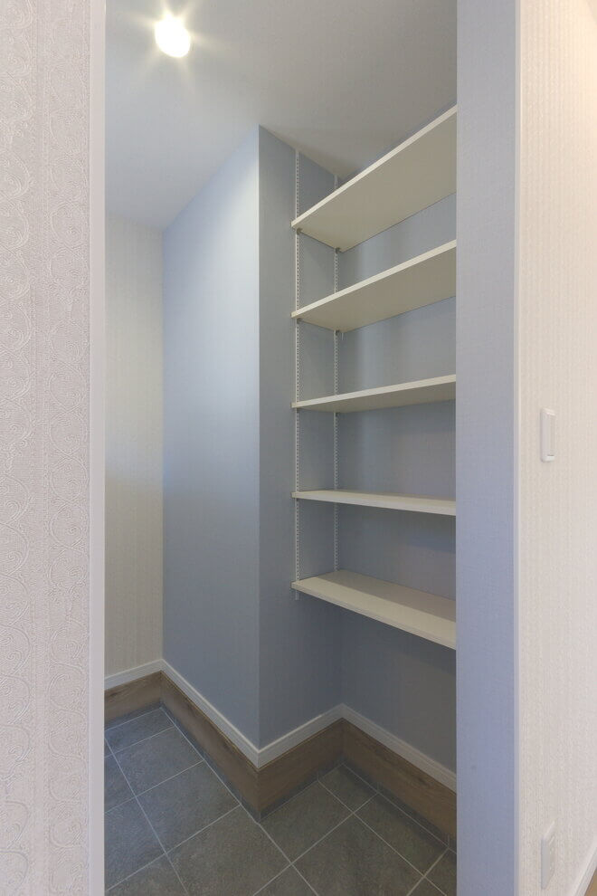 シューズクローク内収納の棚板は可動式で、自由に高さを変えられます。