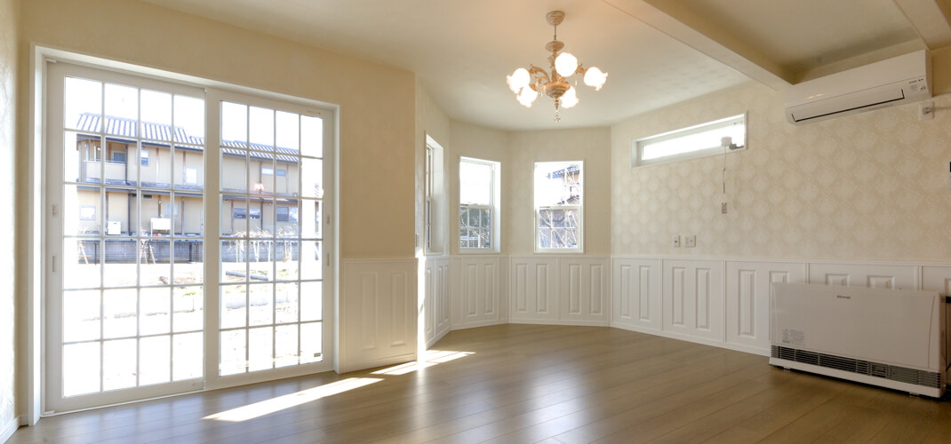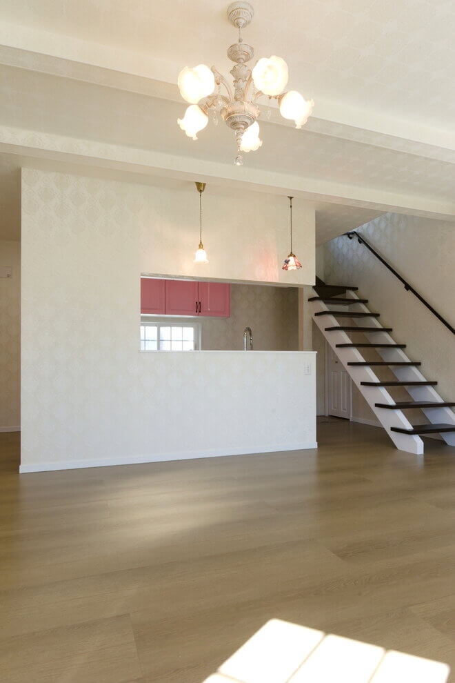 カラーやデザインにお施主様のセンスを反映し、クラシカルな雰囲気のリビング空間を明るく華やかに彩っています。