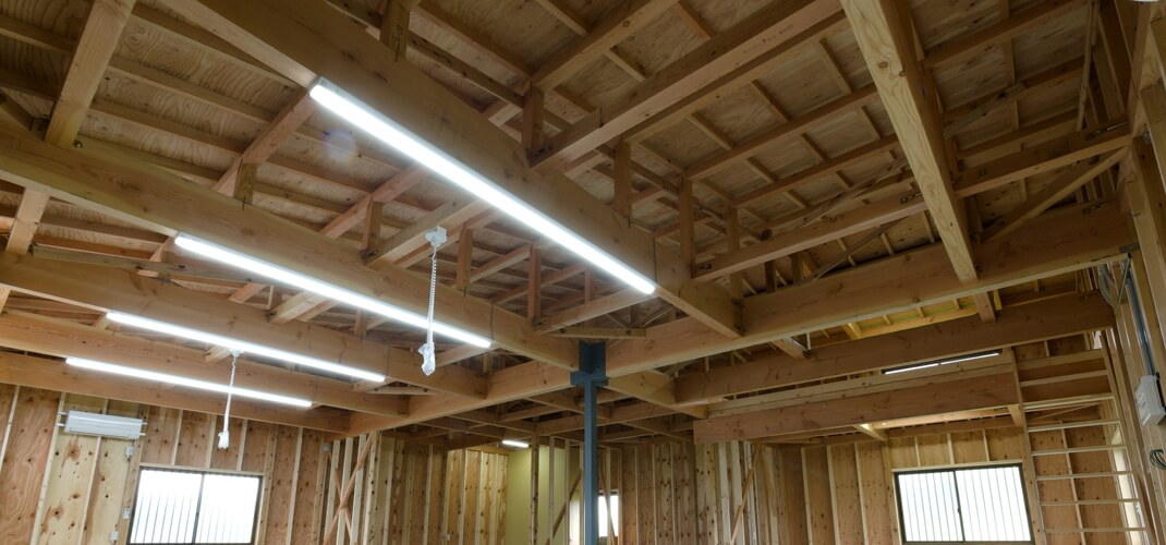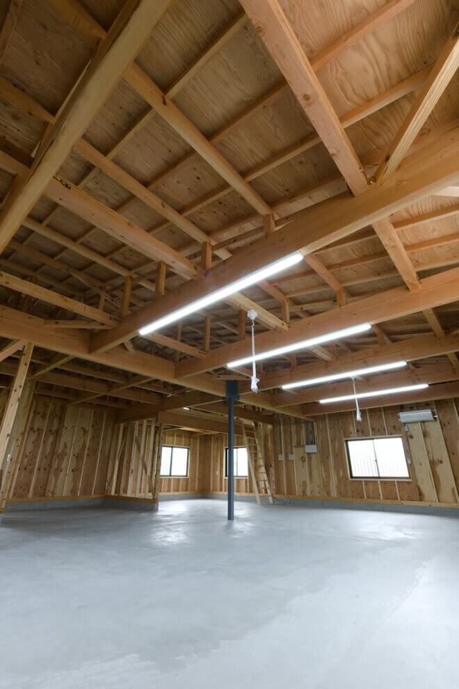 内装は、構造を表しにして、解放感の中で木材の香りをふんだんに感じられる空間になっています。